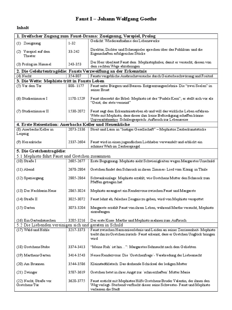 Faust I Johann Wolfgang Von Goethe Zusammenfassung