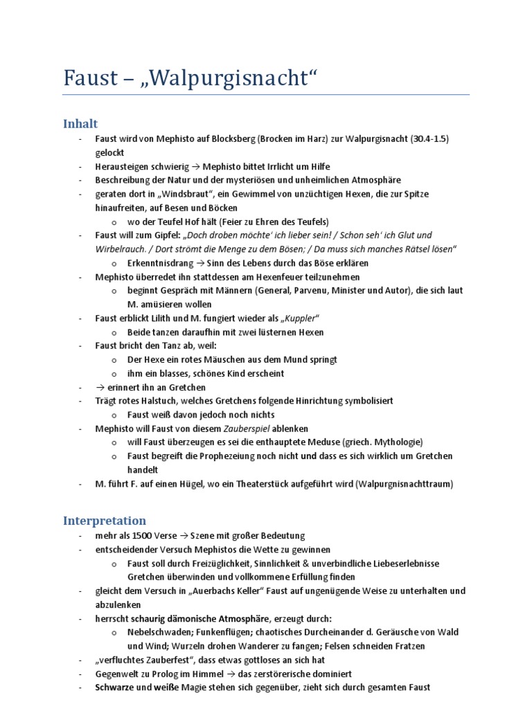 Walpurgisnachtstraum Faust Inhalt Der Walpurgisnachtstraum In